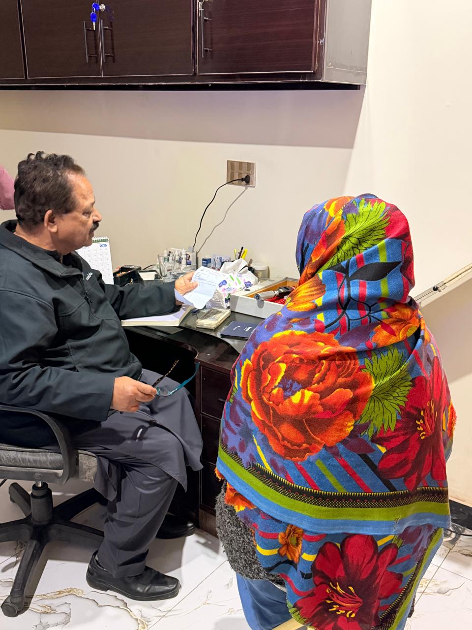 The ceremony was presided over by Prof. Dr. Muhammad Akram Zahid, surrounded by the clinic's full team of specialist doctors, staff, and community members.